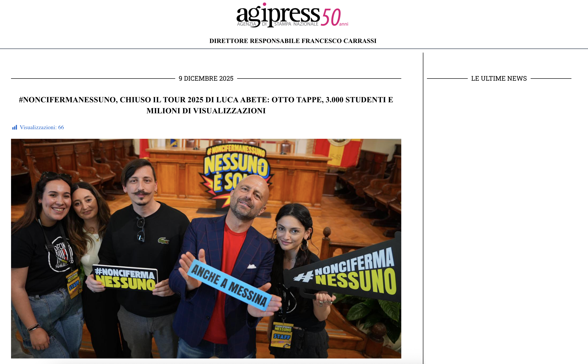 AGI – #NonCiFermaNessuno, chiuso il tour 2025 di Luca Abete: otto tappe, 3mila studenti e milioni di visualizzazioni