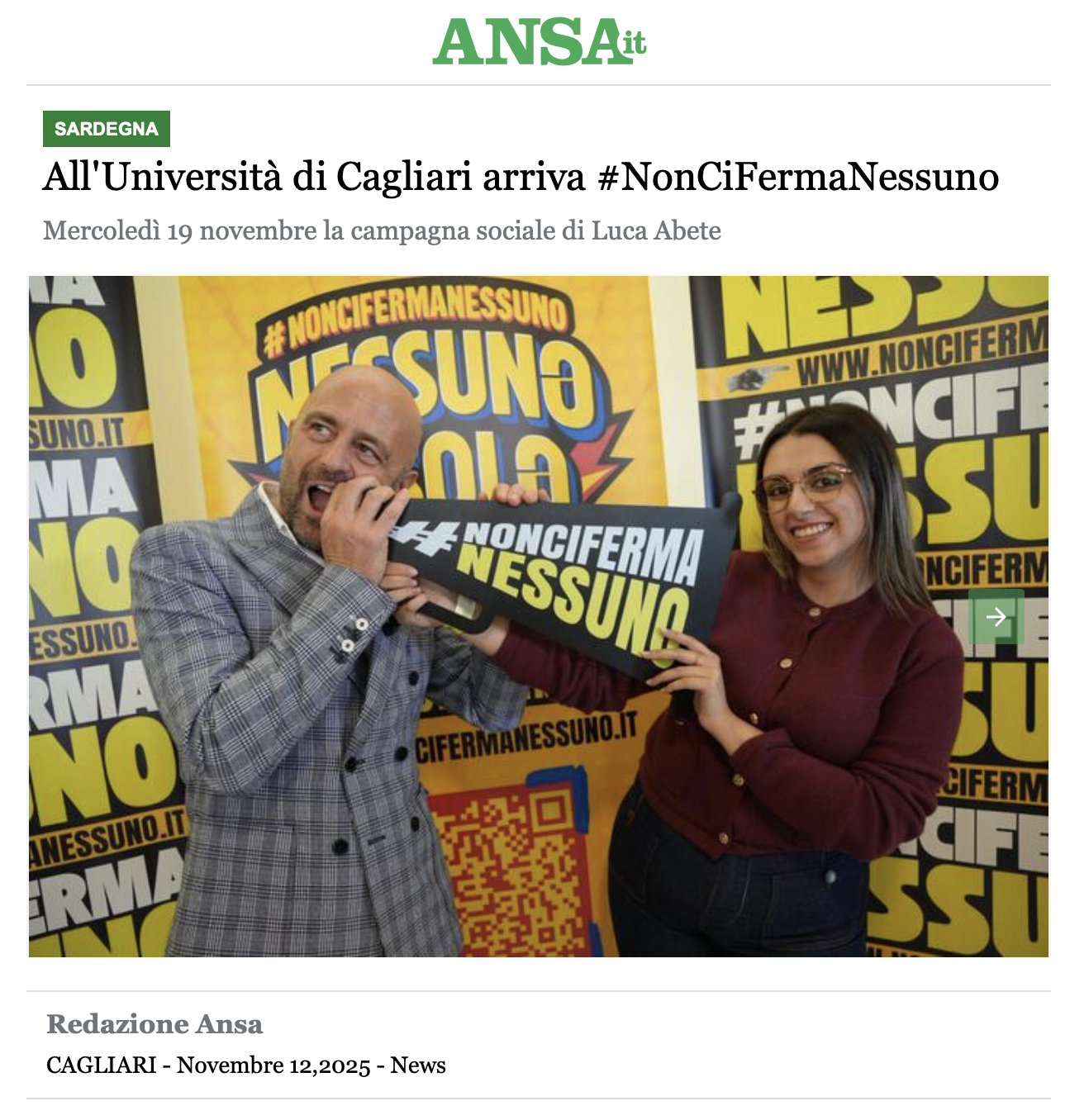 ANSA – All’Università di Cagliari arriva #NonCiFermaNessuno