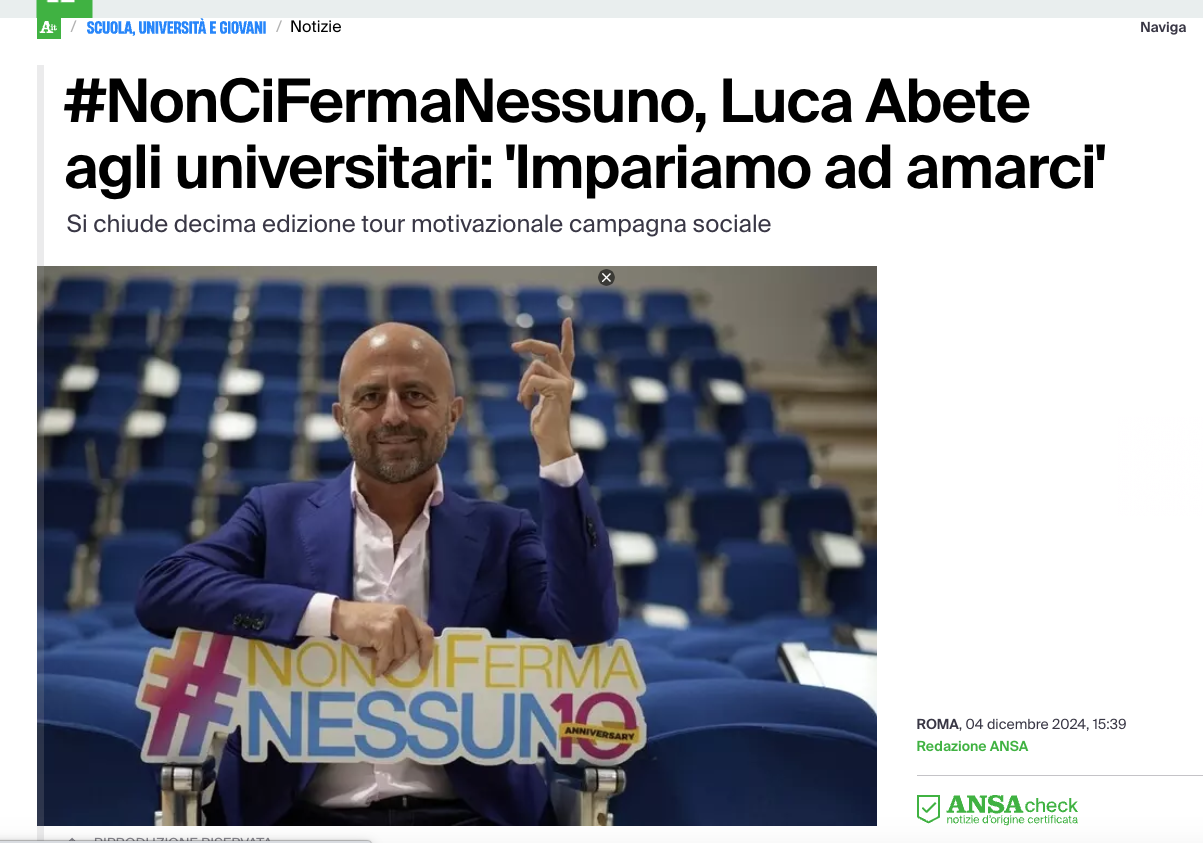 ANSA – Si chiude decima edizione tour motivazionale campagna sociale di Luca Abete