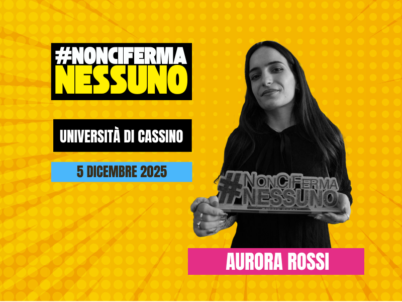 In occasione della tappa presso l’Università degli Studi di Cassino e del Lazio Meridionale, il Premio #NonCiFermaNessuno, che da cinque anni celebra storie di eroismo quotidiano, è stato assegnato alla 26enne dottoranda in Giurisprudenza Aurora Rossi. «A scuola sono stata vittima di bullismo: mi dicevano “perché non ti uccidi?”. Ho scelto di resistere, di rinascere. Ho affrontato un’operazione al cervello, una diagnosi di endometriosi e la domanda più grande a soli 23 anni: congelare o no i miei ovuli. La verità è che a volte mi sento sola, ma so che non lo sono. Mi aggrappo a mia mamma e ai suoi “no” quando nella mia testa balenano brutti pensieri».