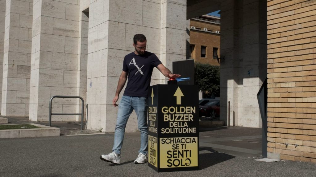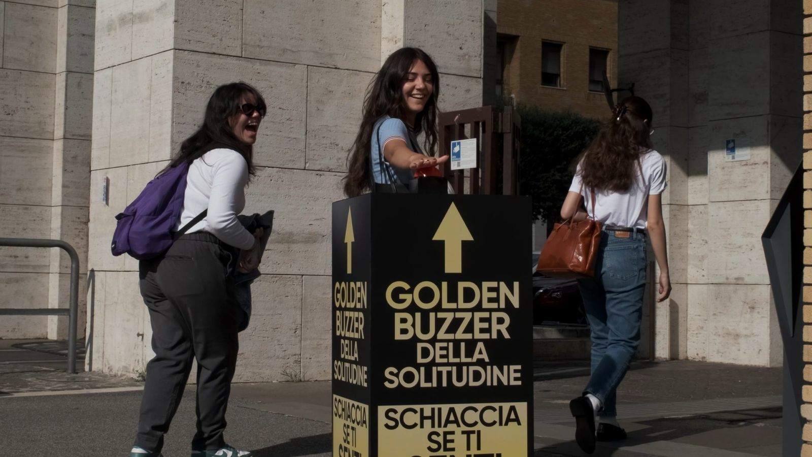 Ha creato curiosità e interesse anche della stampa l’ultimo esperimento sociale della campagna motivazionale #NonCiFermaNessuno. Un misterioso Golden Buzzer della Solitudine – un totem che invita chi si sente solo a schiacciare un pulsante – è apparso davanti ad alcune facoltà dell’Università Sapienza di Roma.