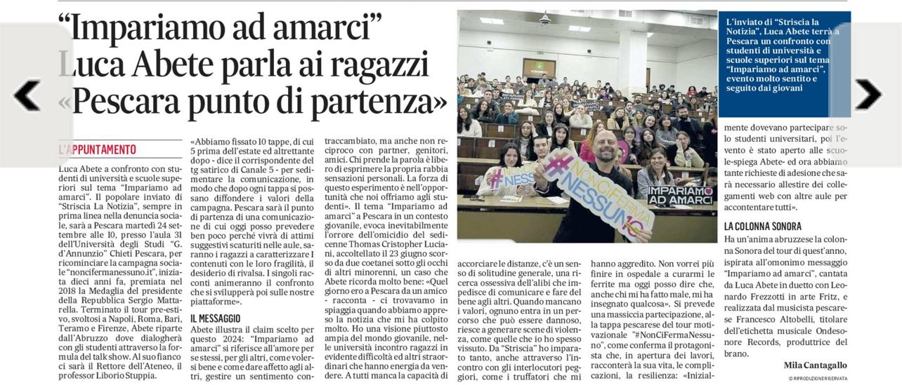 Intervista de “Il Messaggero” a Luca Abete. Pescara punto di partenza