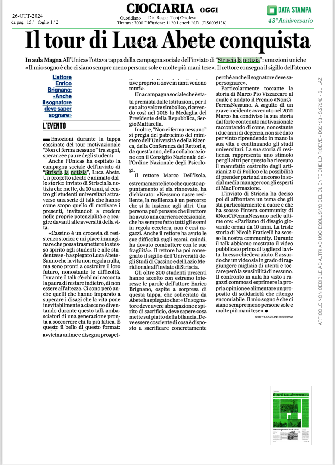 Luca Abete a Ciociaria Oggi: “Il mio sogno è che d’ora in poi ci siano sempre meno persone sole e molte più mani tese”