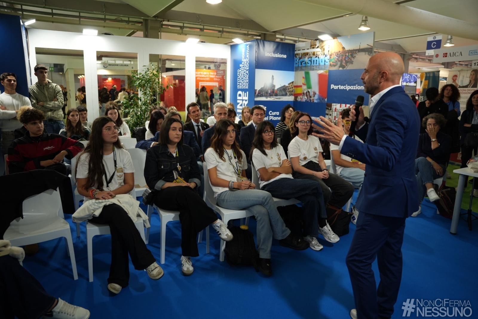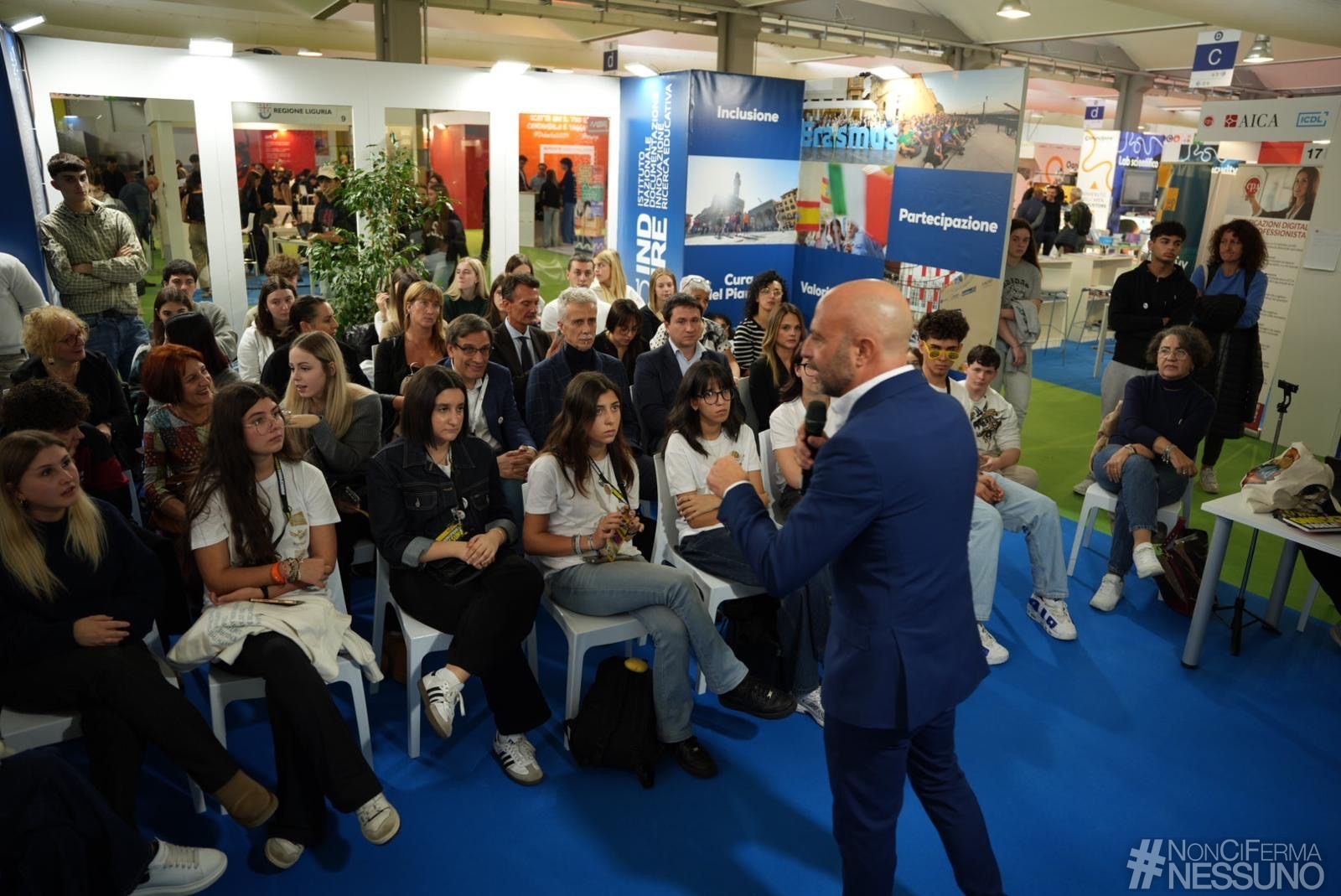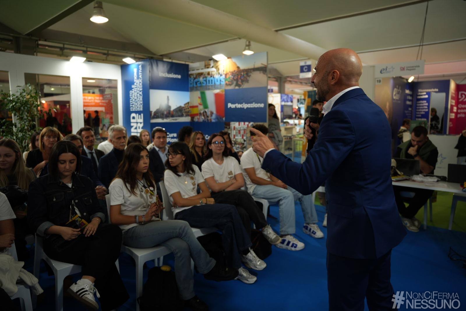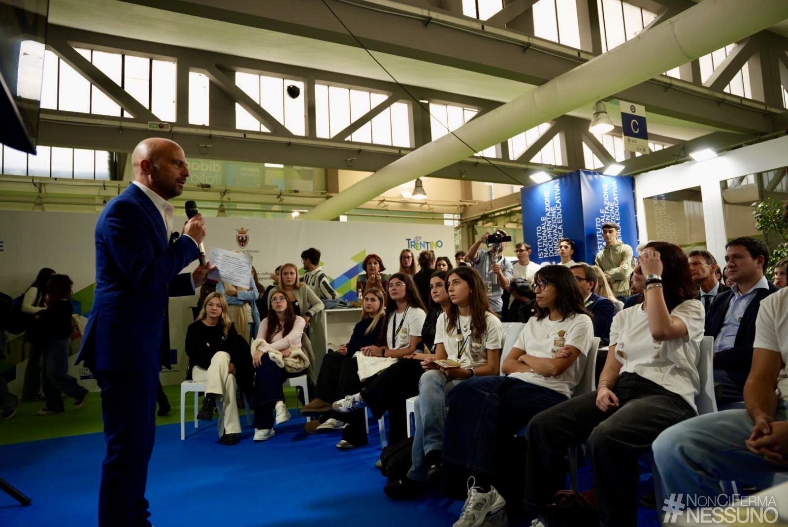 Tappa speciale della campagna sociale motivazionale #NonCiFermaNessuno di Luca Abete che ha preso parte a Didacta Italia – Edizione Trentino a Riva del Garda, nell’ambito del progetto Erasmus+ promosso dall’Agenzia INDIRE. Un’occasione unica per l’appuntamento più importante sulla formazione e l’innovazione del mondo della scuola in Italia. «Essere oggi a Didacta non è vetrina, ma un’alleanza con chi vuole elaborare strumenti nuovi per consentire ai ragazzi di continuare a rincorrere i propri sogni – afferma Abete –. Siamo qui per affilare le idee che domani taglieranno le paure e distribuiranno preziosi pezzi di coraggio. Mentre ci si affida sempre più alla tecnologia, la nostra campagna sociale porta la vera rivoluzione analogica: dare valore alle voci invisibili, trasformando le esperienze in patrimonio collettivo utile a diffondere fiducia, coraggio e un bel po’ di entusiasmo».