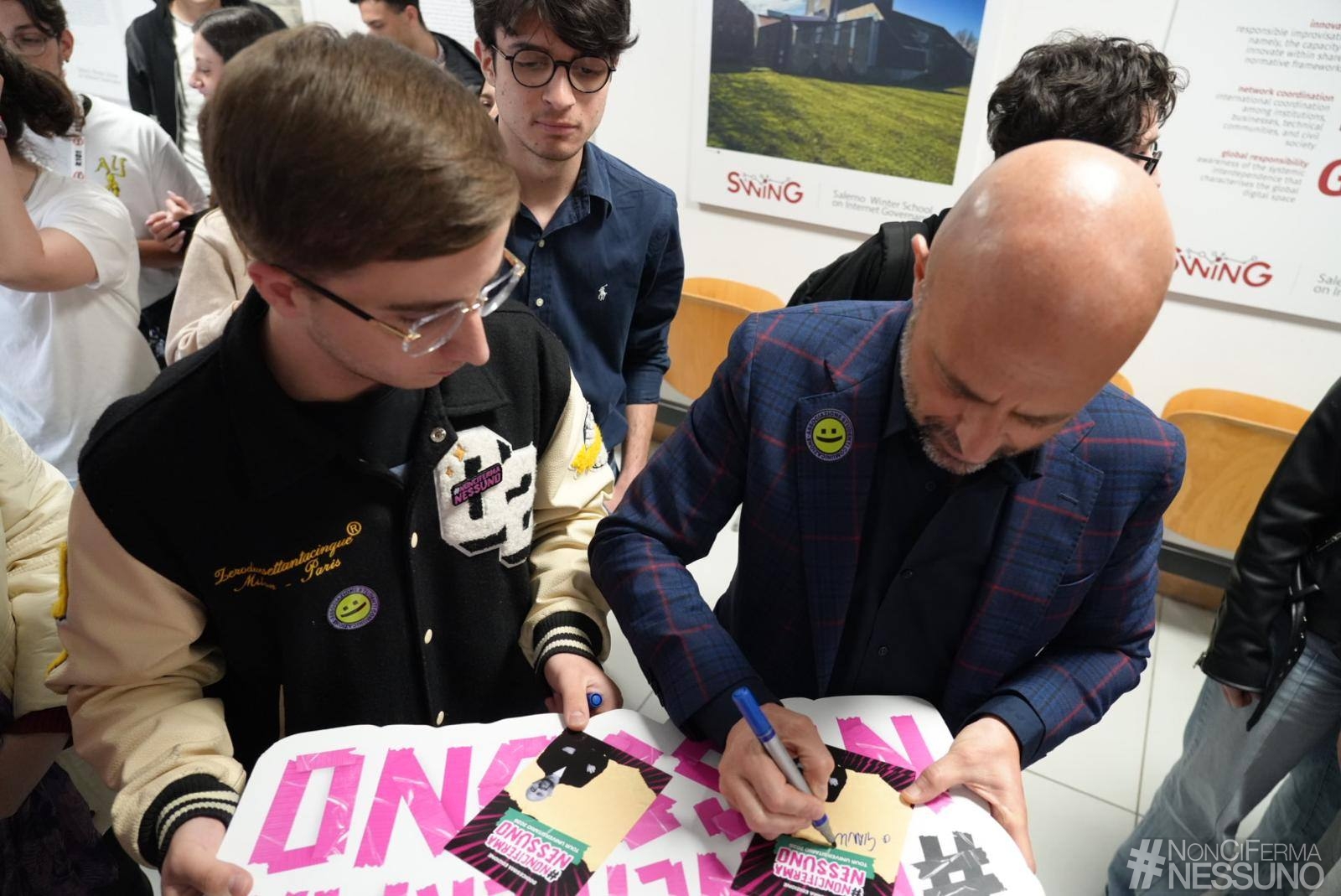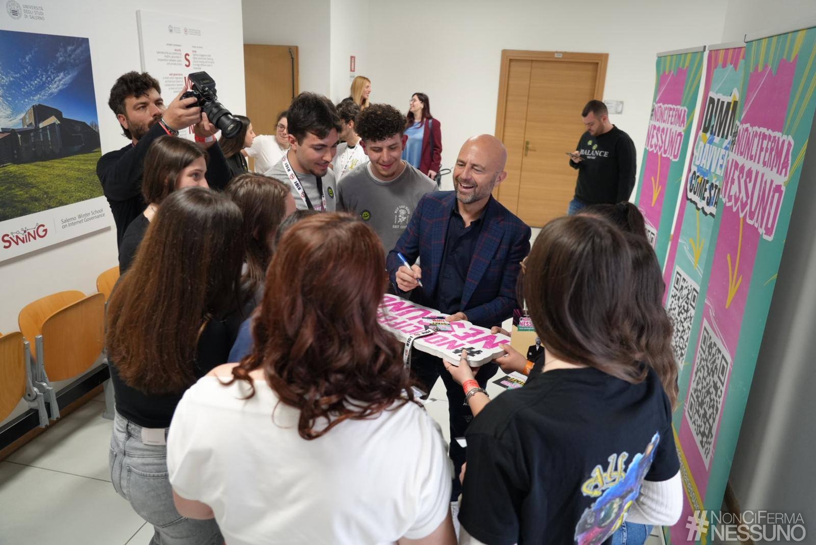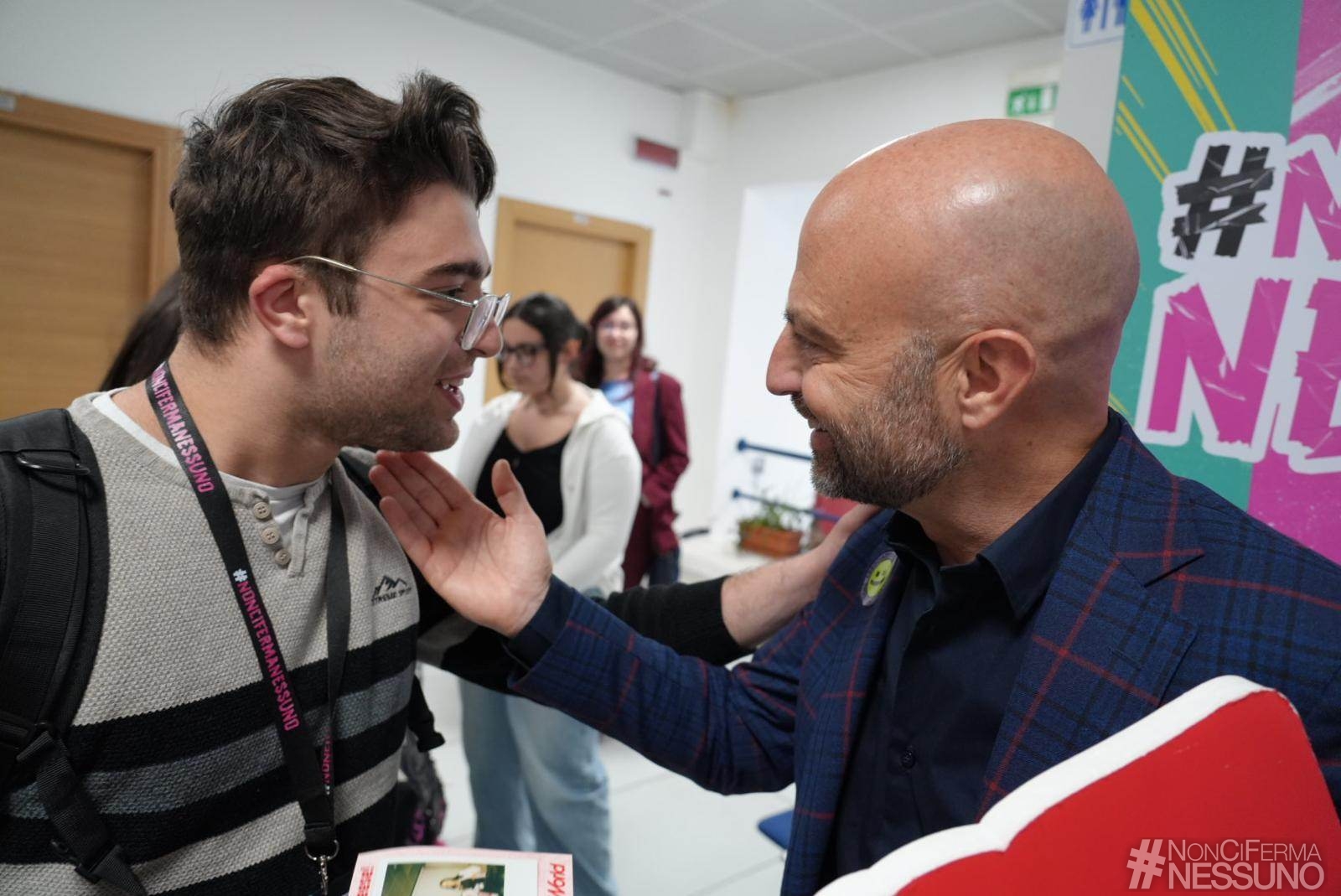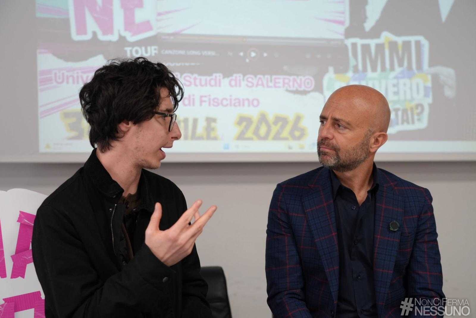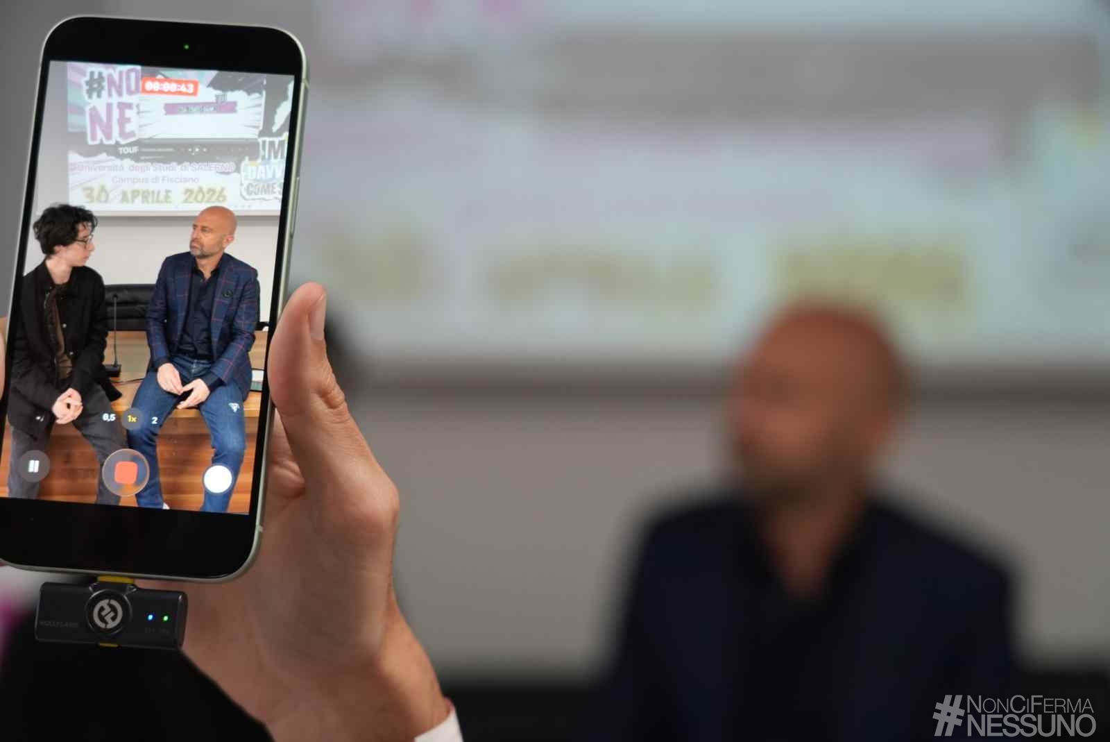 Che cosa significa davvero dire “sto bene”? È da questa domanda che ha preso forma la tappa salernitana di #NonCiFermaNessuno, la campagna sociale di Luca Abete che ha coinvolto centinaia di studenti nell’Aula De Rosa del campus di Fisciano dell’Università degli Studi di Salerno. «A Salerno oggi ho ascoltato gli studenti con molta attenzione e ho avuto conferma che non sono i ragazzi a essere in difficoltà. È il contesto che abbiamo costruito per loro a creare disagio».