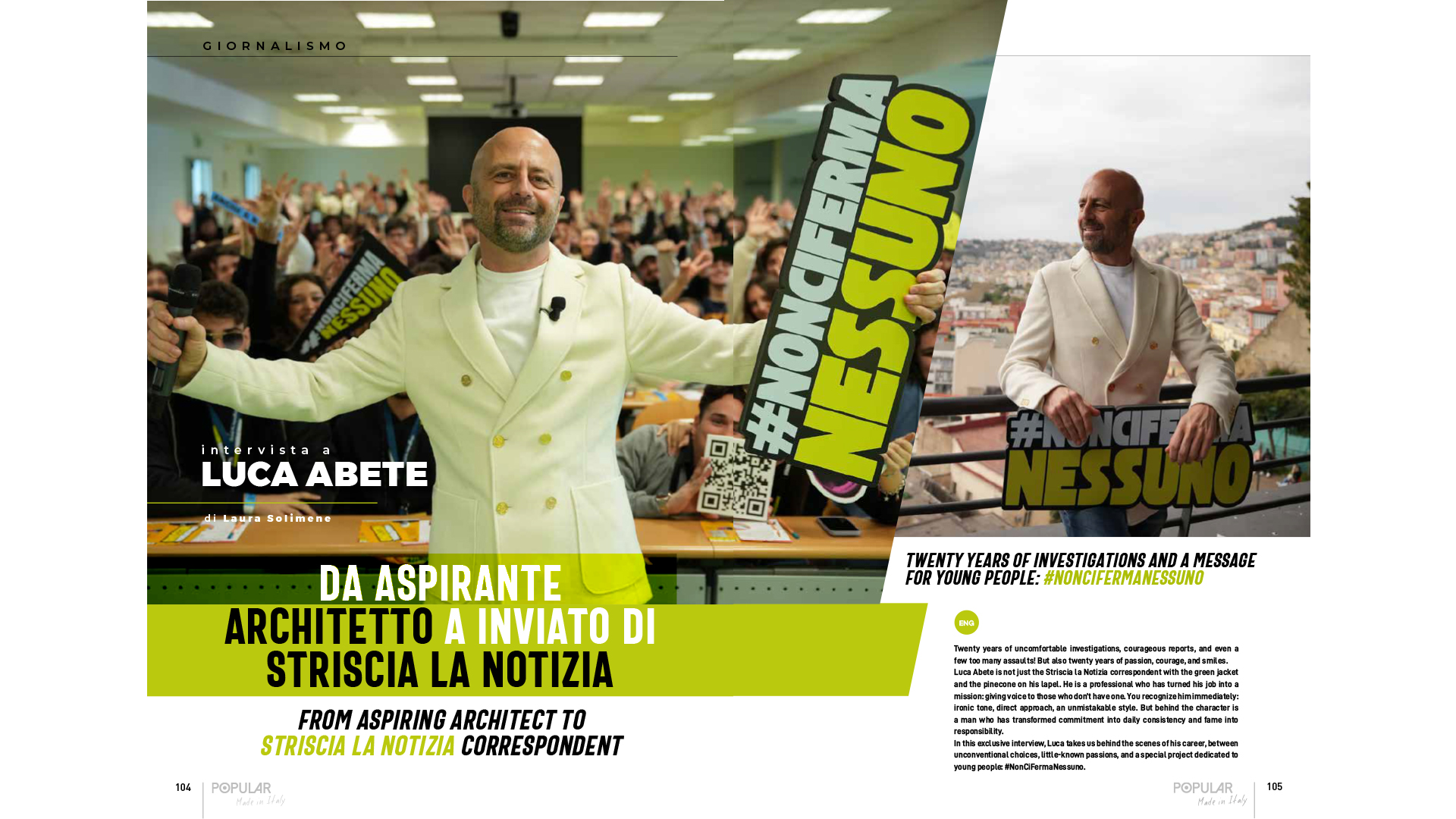 Il magazine Popular ha dedicato parte delle proprie colonne alla campagna sociale motivazionale #NonCiFermaNessuno di Luca Abete. In una lunga intervista, l’invitato di Striscia ha analizzato il progetto fatto da e per giovani universitari.