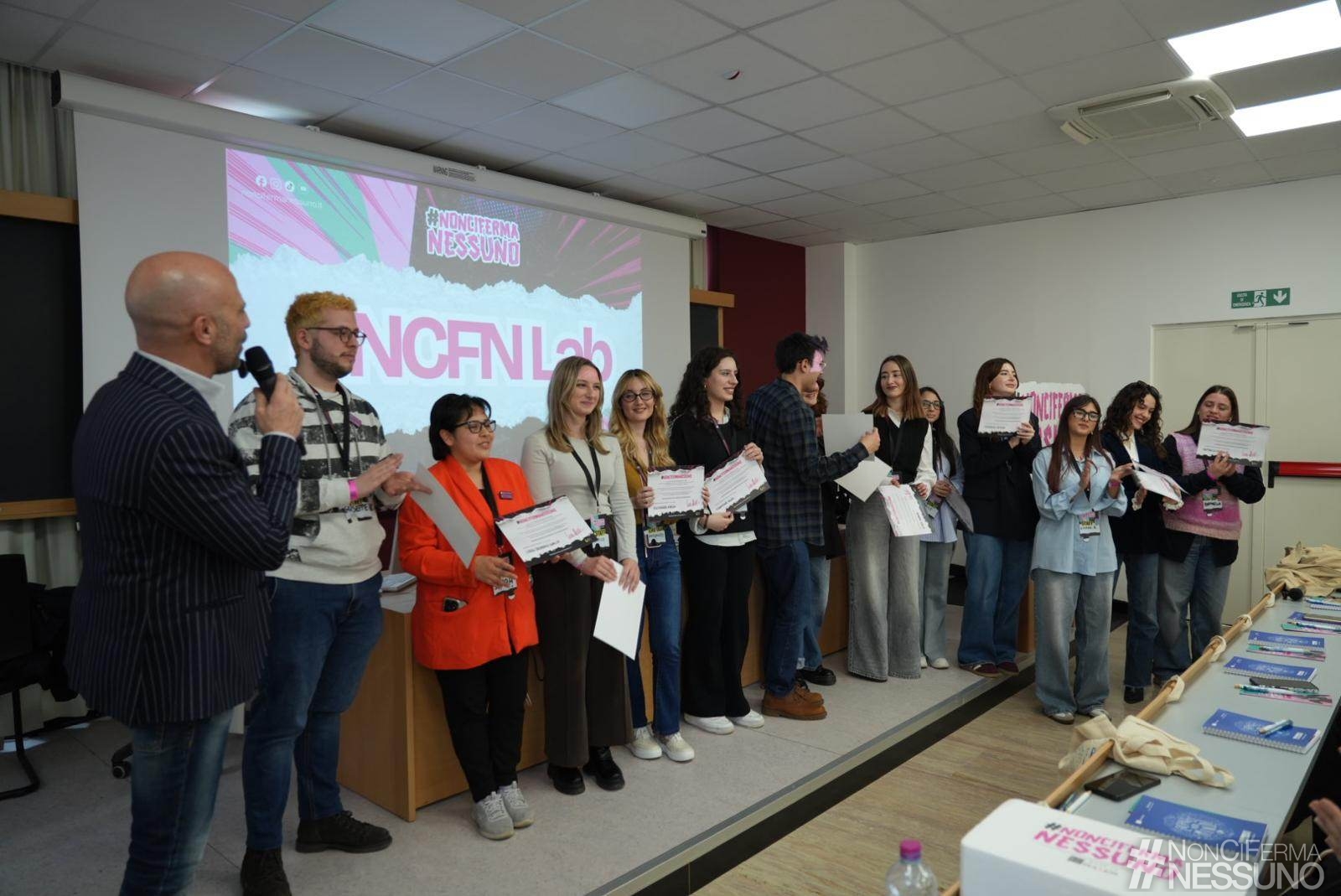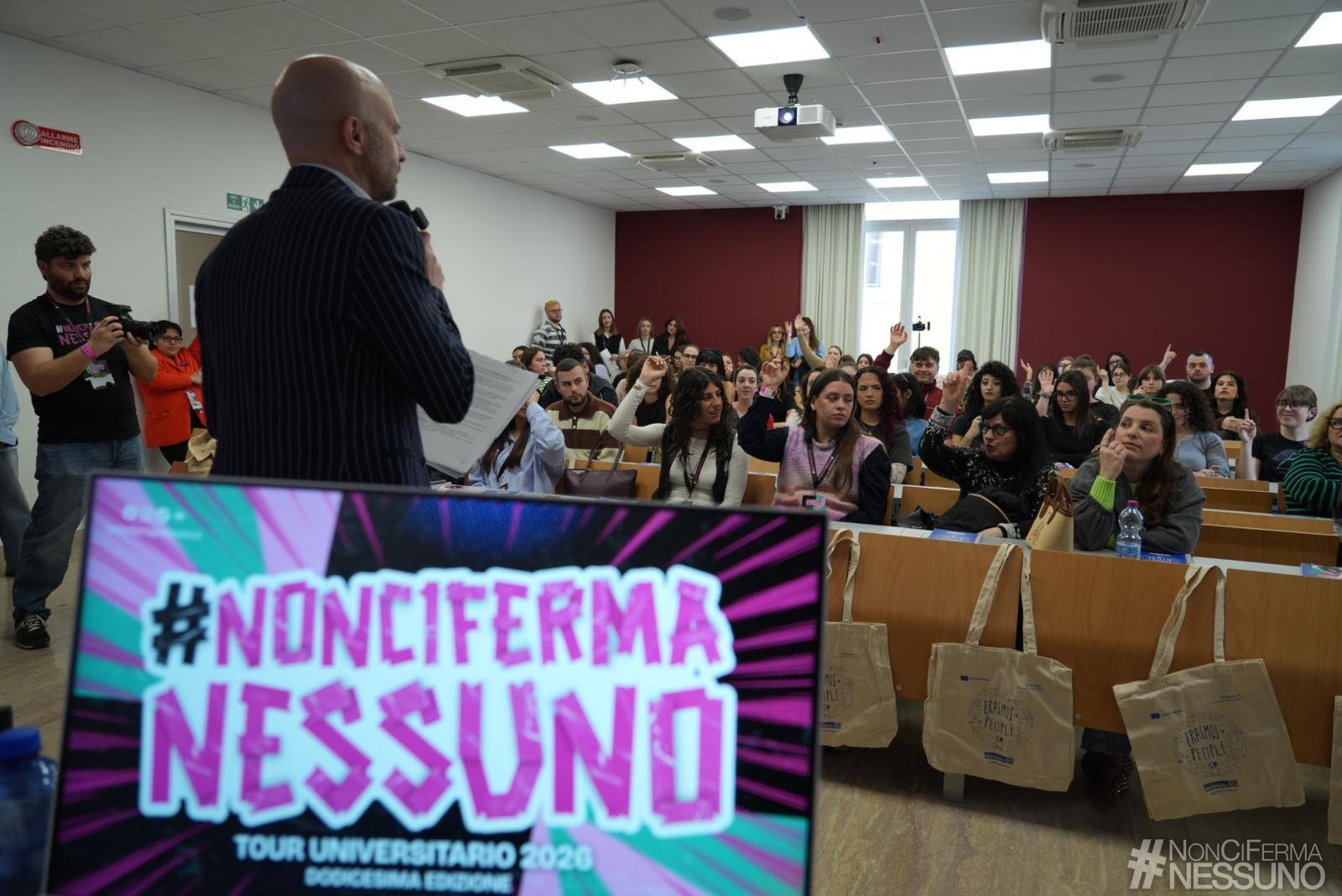 Insomma, una grande festa impreziosita dalle produzioni di Print Solution e Dna Creative Lab che hanno colorato e reso imprevedibile l’atmosfera dentro e fuori dall’aula. #NonCiFermaNessuno, che vanta la Medaglia del Presidente della Repubblica, Sergio Mattarella, prosegue il suo viaggio in giro per l’Italia: prossima tappa il 31 marzo a Campobasso all’Università degli Studi del Molise.