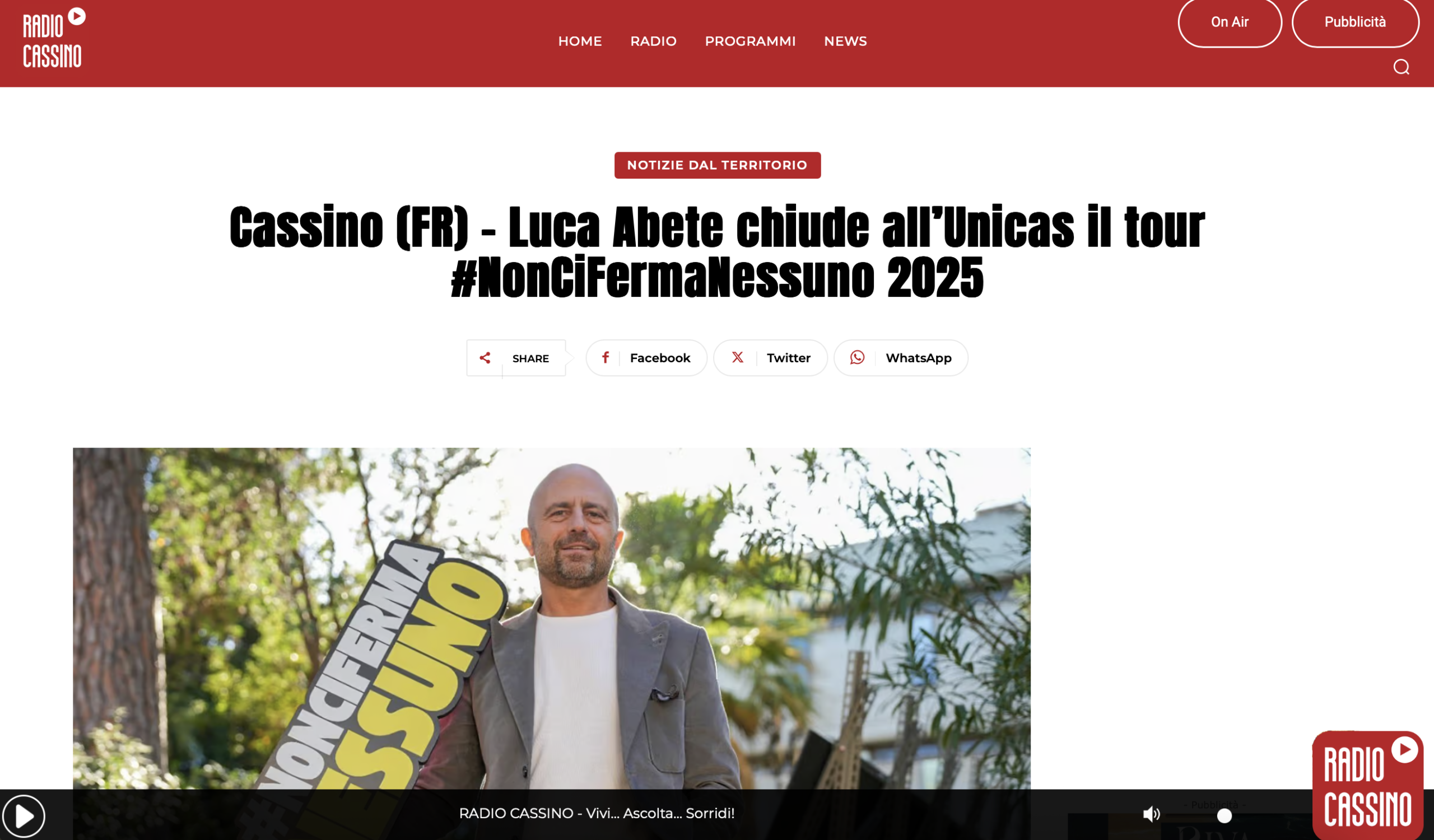 Radio Cassino – Luca Abete chiude all’Unicas il tour #NonCiFermaNessuno 2025