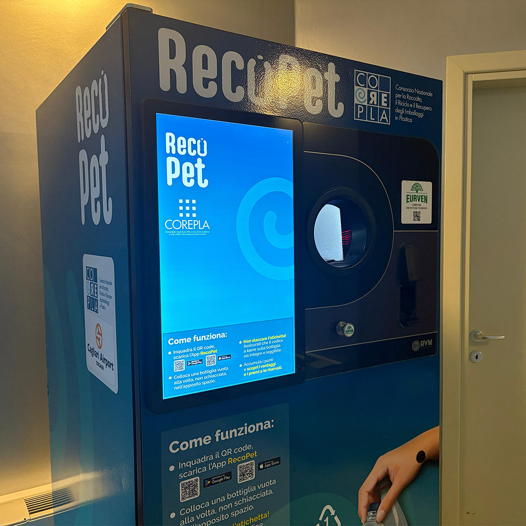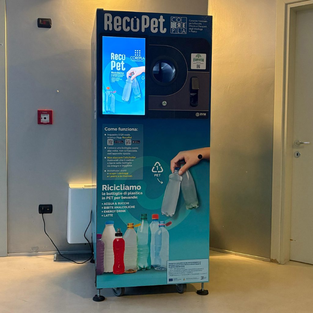 Sono in totale cinque gli ecocompattatore RECOPET installati in altrettante Università d’Italia – Bari, Napoli, Catania, Messina e Cagliari – nell’ambito della campagna sociale motivazionale #NonCiFermaNessuno. In occasione della penultima tappa del tour di Luca Abete, il direttore della Gestione Operativa di COREPLA, Alessandro Protopapa ha illustrato agli studenti dell’Aula Magna le potenzialità e i benefici green degli ecocompattatori.