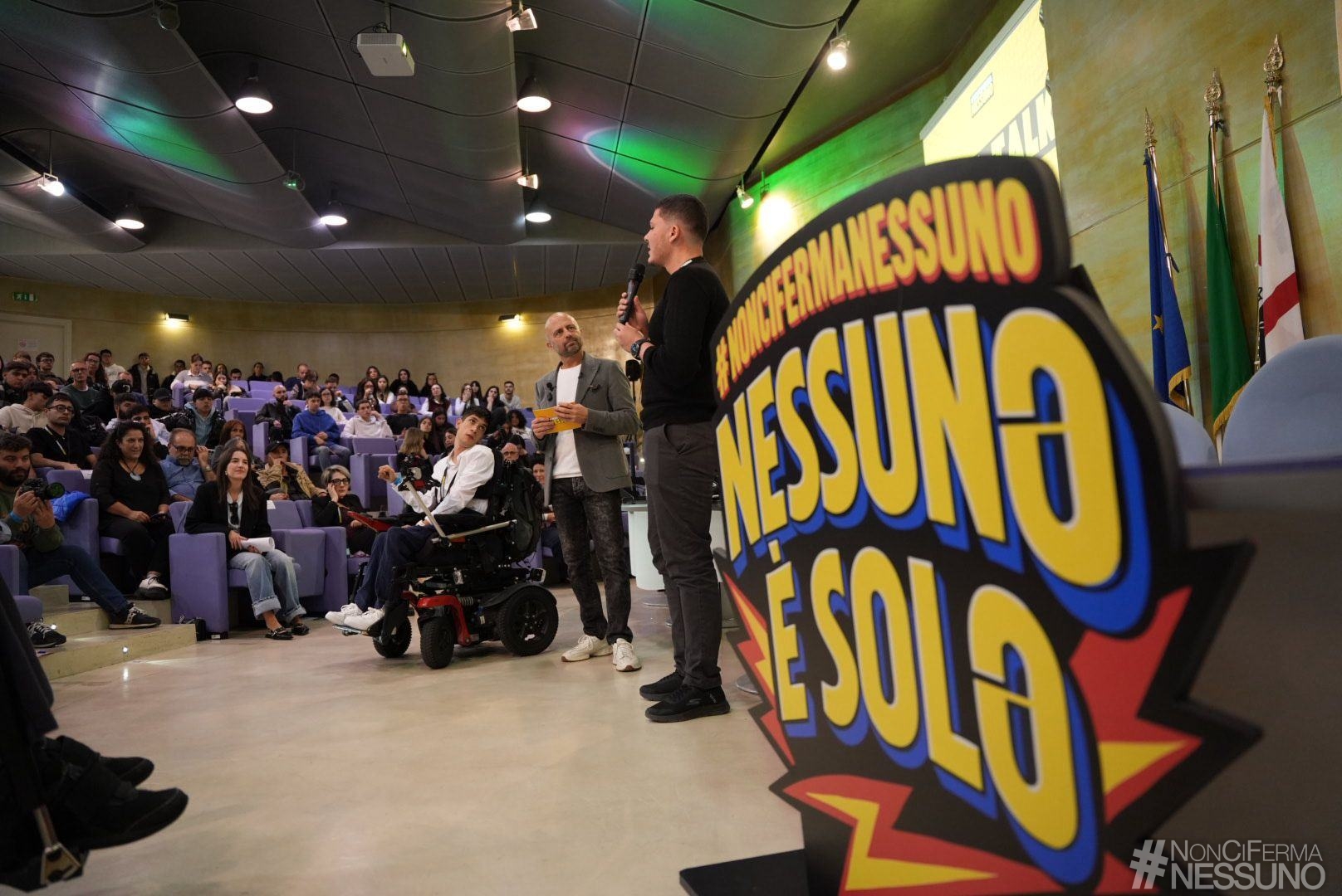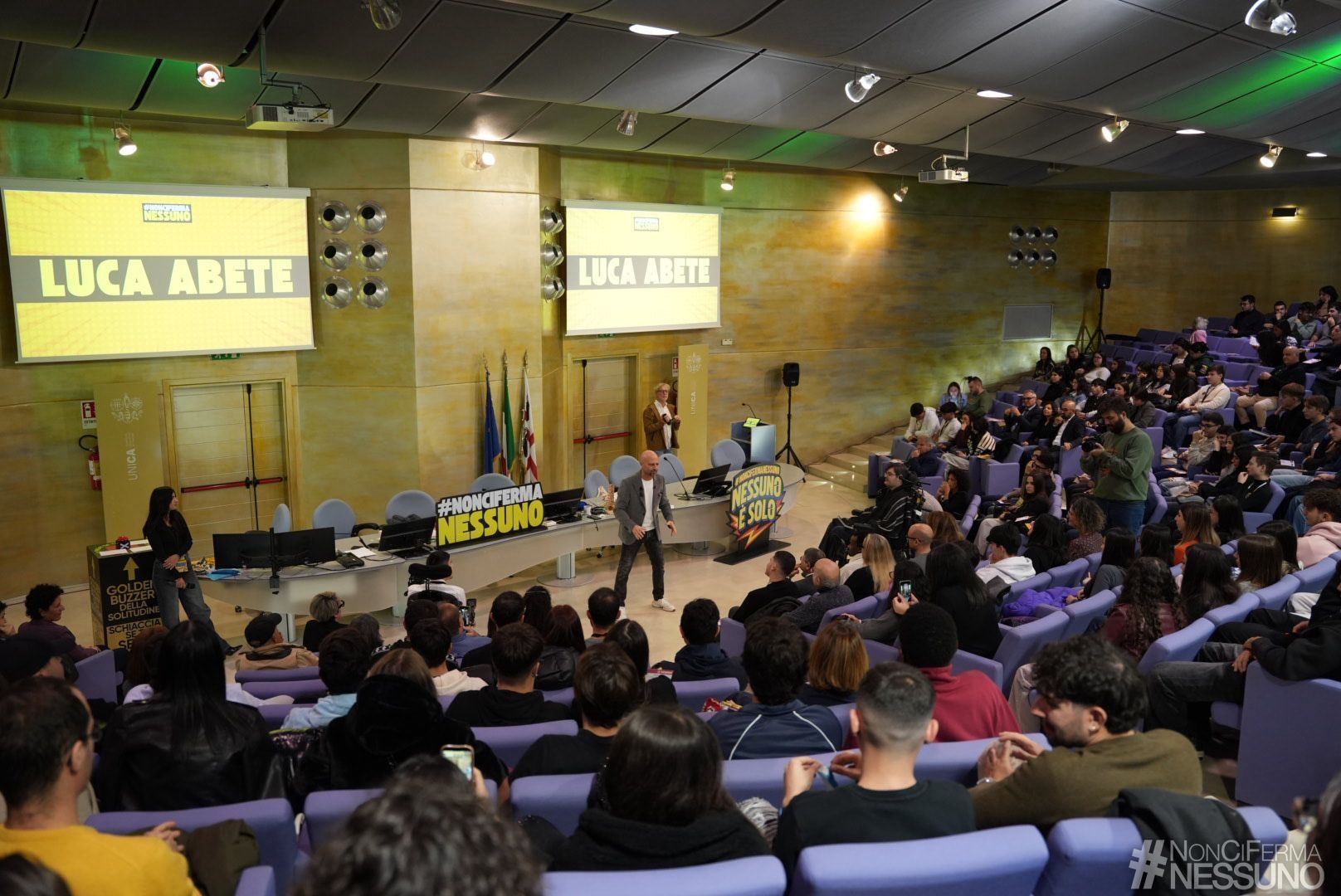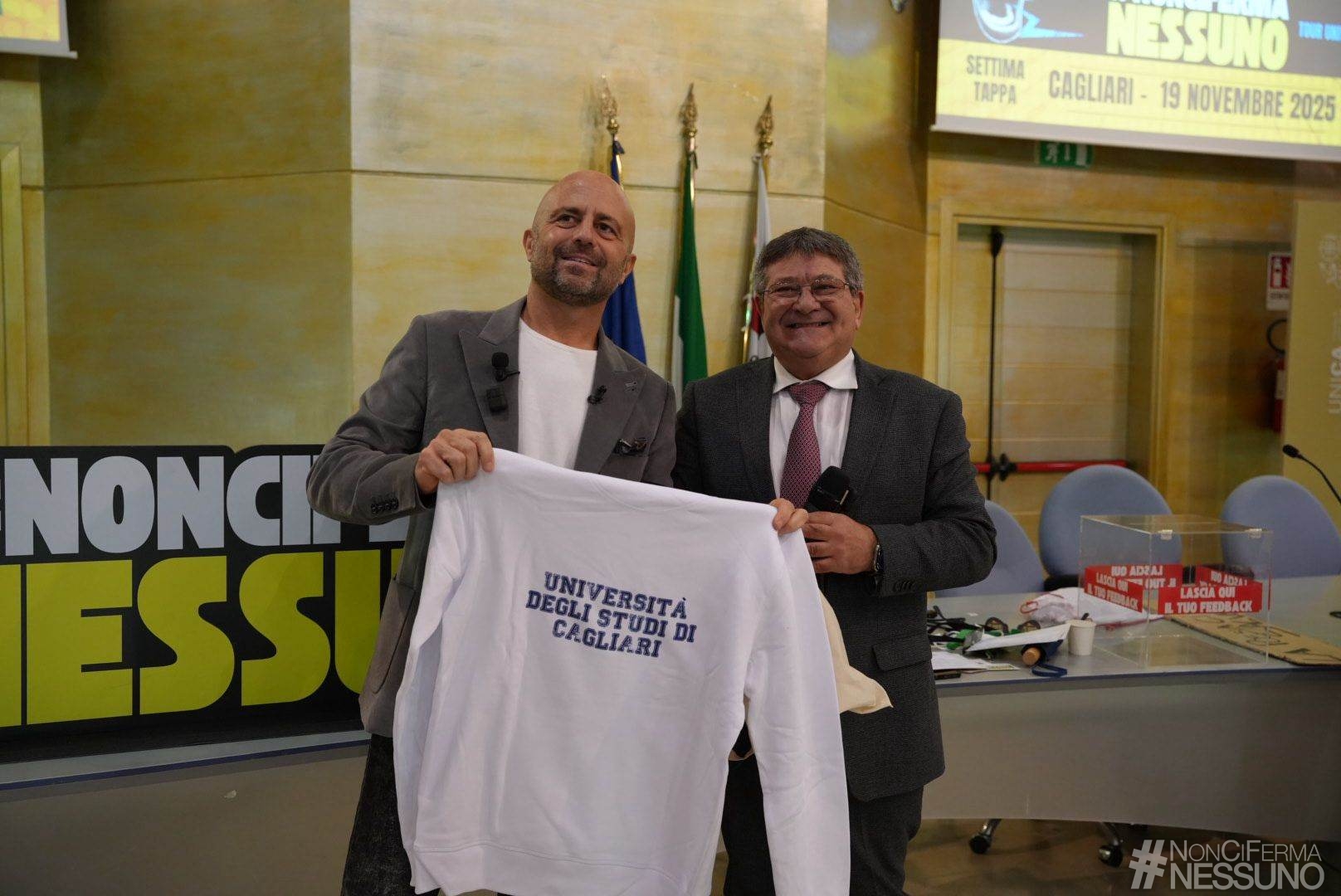 È stata un successo la prima volta in Sardegna di #NonCiFermaNessuno. La campagna sociale motivazionale è approdata all’Università degli Studi di Cagliari, dove oltre 300 studenti e studentesse hanno accolto con entusiasmo l’iniziativa ideata nel 2014 da Luca Abete. «Non portiamo motivazione ma umanizzazione – afferma l’inviato di Striscia la notizia –. Non siamo qui per convincere nessuno a essere felice. Ritengo sia giusto ricordare che la tristezza esiste, che anche la paura merita rispetto e che la fragilità non è un difetto. Ma, anzi, è una porta. E talvolta può bastare semplicemente chiamare per nome chi pensa si tratti di un muro maledetto e non vede quella maniglia da impugnare».