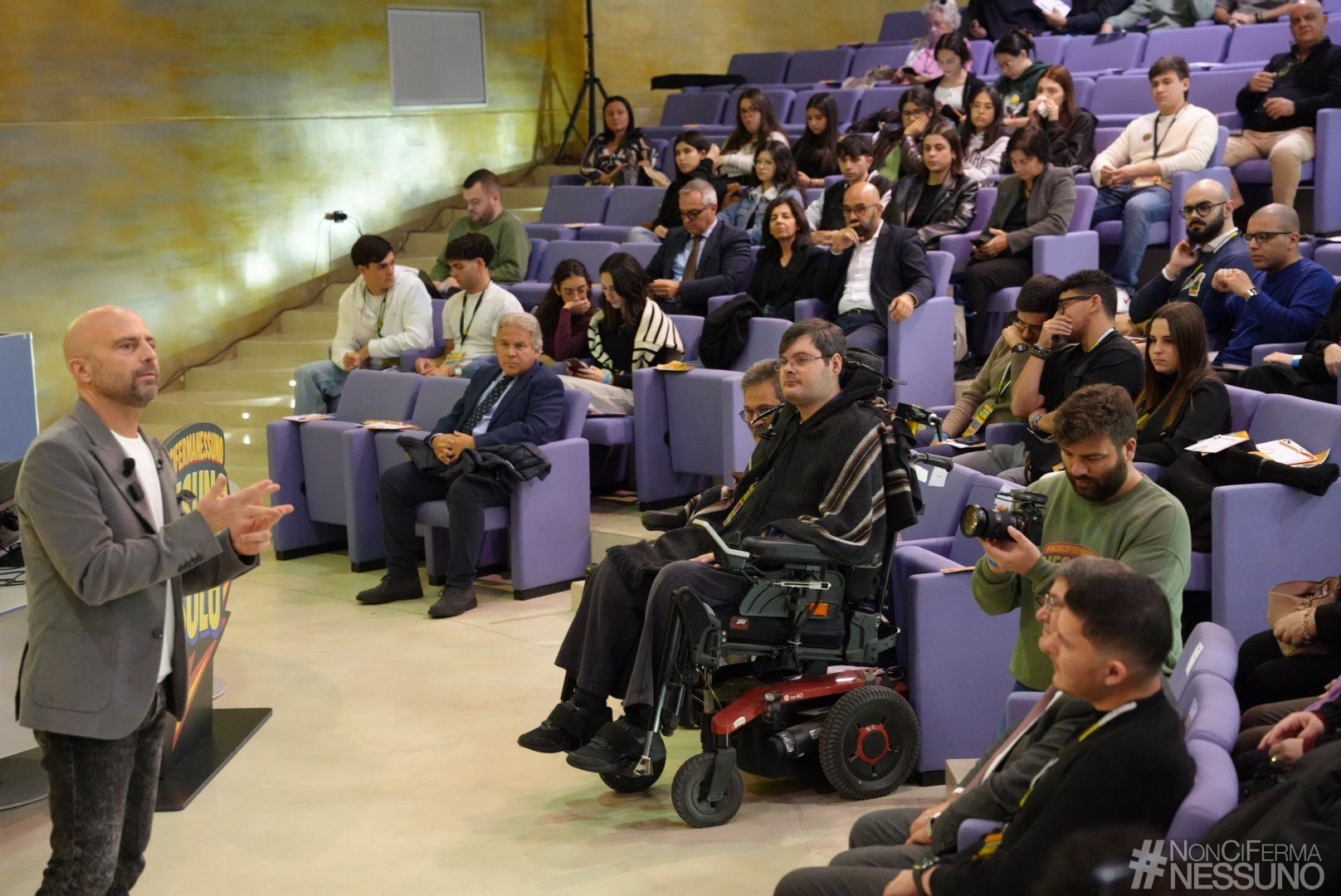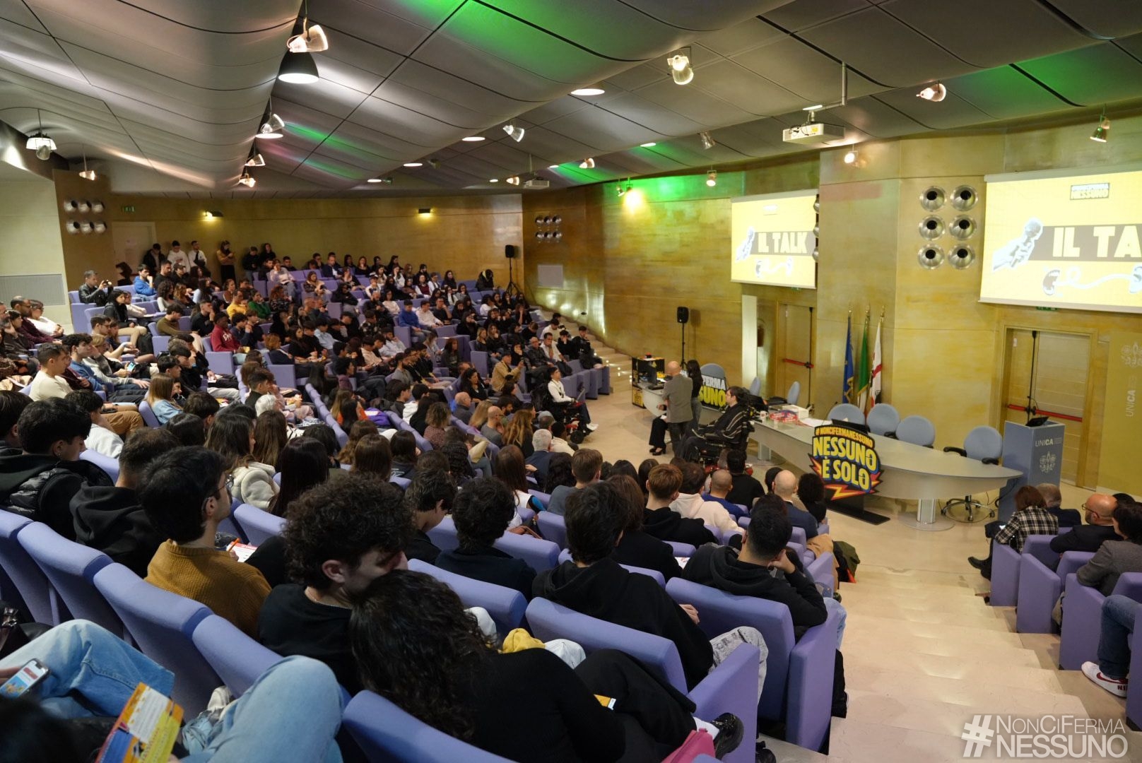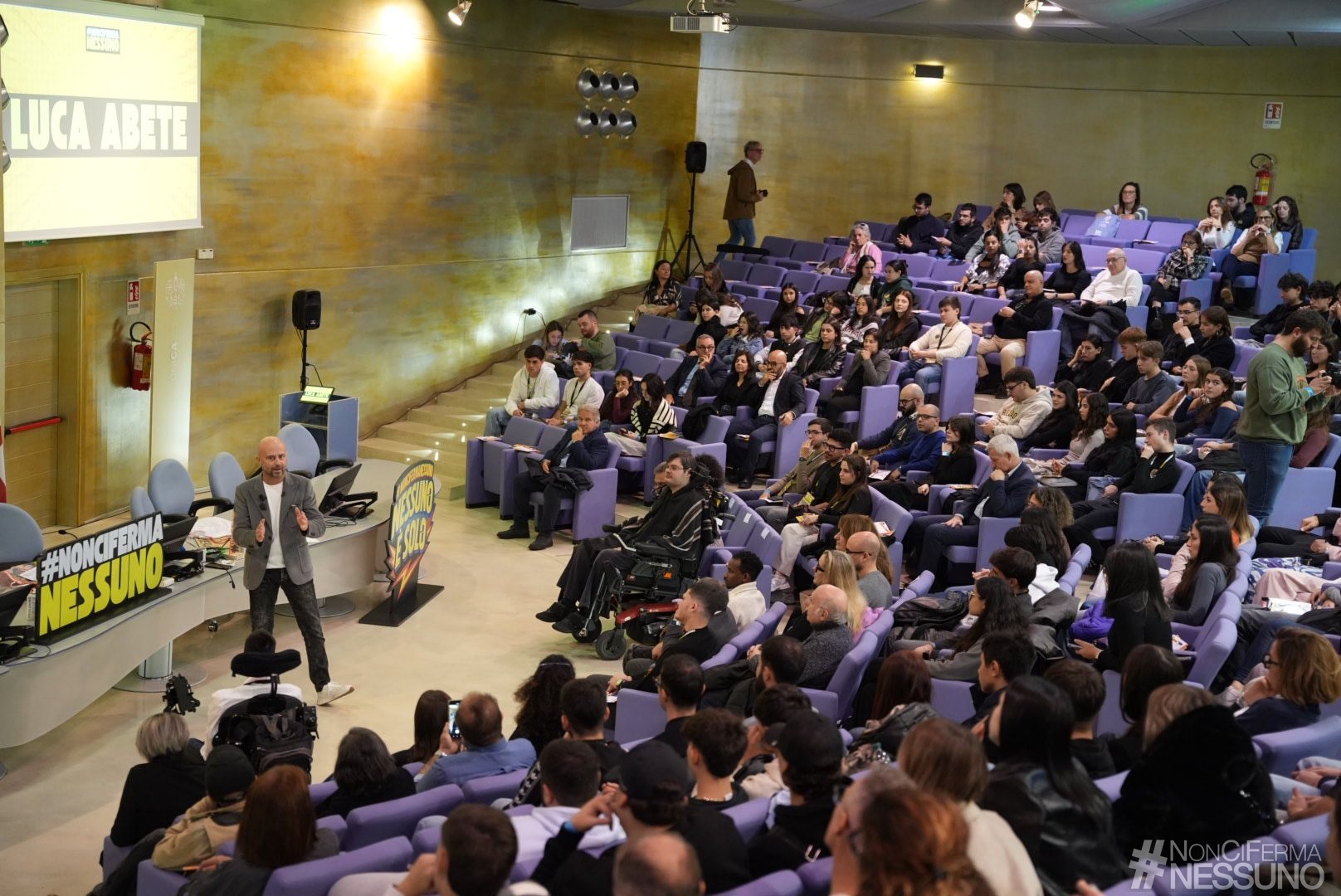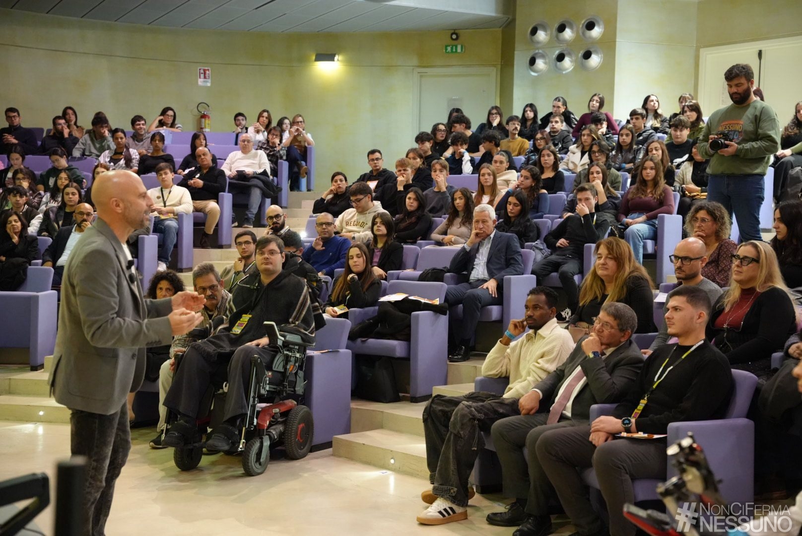 È stata un successo la prima volta in Sardegna di #NonCiFermaNessuno. La campagna sociale motivazionale è approdata all’Università degli Studi di Cagliari, dove oltre 300 studenti e studentesse hanno accolto con entusiasmo l’iniziativa ideata nel 2014 da Luca Abete. «Non portiamo motivazione ma umanizzazione – afferma l’inviato di Striscia la notizia –. Non siamo qui per convincere nessuno a essere felice. Ritengo sia giusto ricordare che la tristezza esiste, che anche la paura merita rispetto e che la fragilità non è un difetto. Ma, anzi, è una porta. E talvolta può bastare semplicemente chiamare per nome chi pensa si tratti di un muro maledetto e non vede quella maniglia da impugnare».