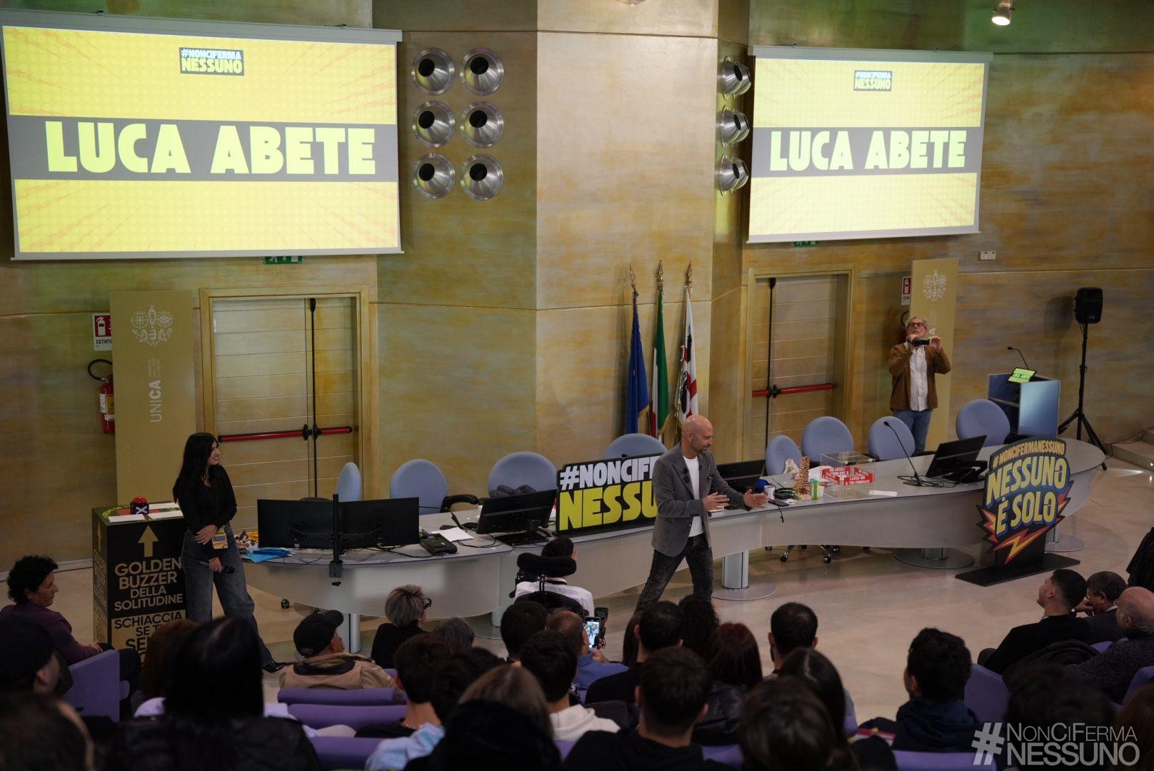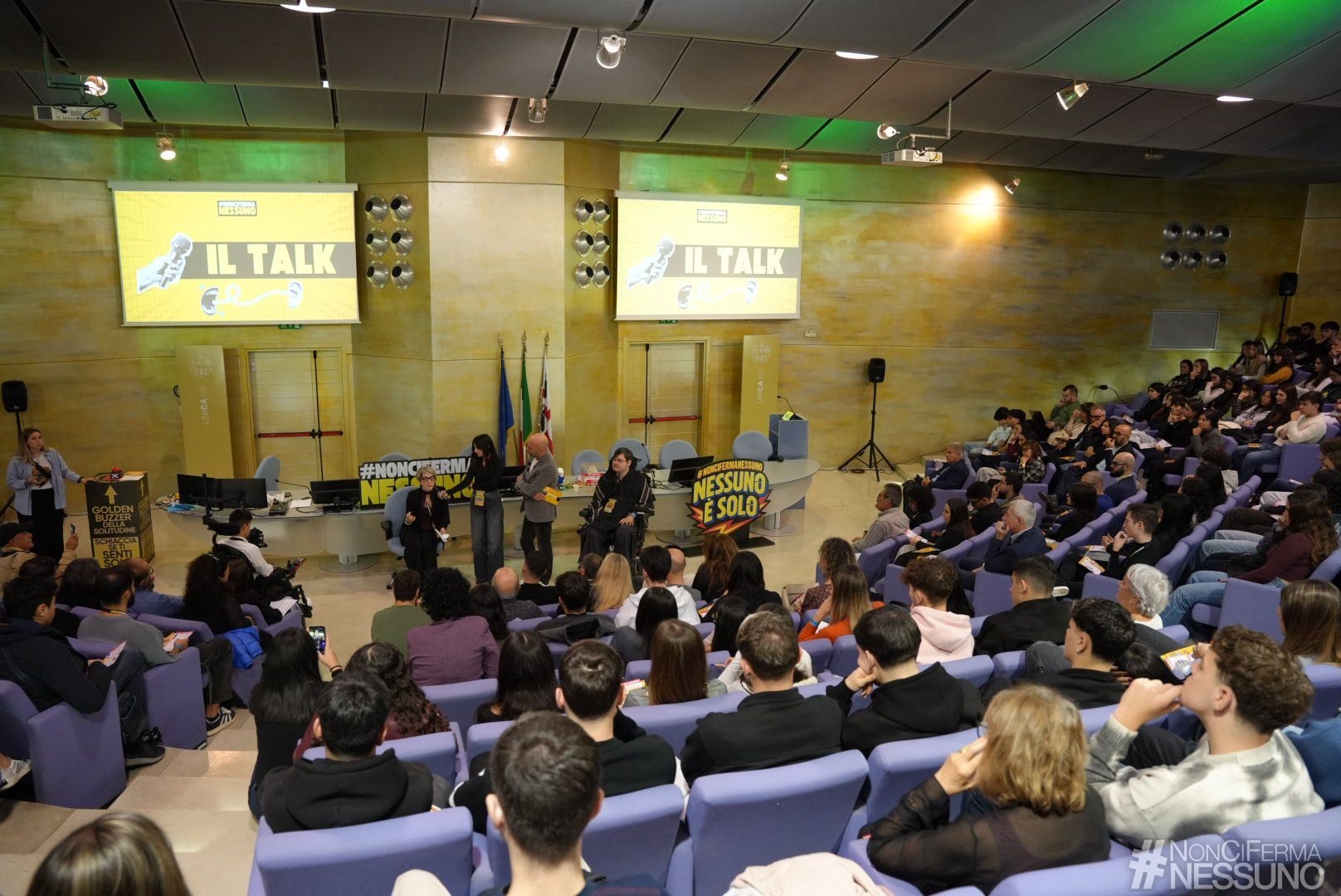 #NonCiFermaNessuno, che vanta la Medaglia del Presidente della Repubblica, Sergio Mattarella, il patrocinio della CRUI – Conferenza dei Rettori delle Università italiane – e del Ministero dell’Università e della Ricerca, si conferma così un appuntamento rilevante nei calendari degli Atenei italiani. Al centro del talk con gli studenti: fragilità, paure ma anche storie di resilienza scandite dal suono del Golden Buzzer della Solitudine, un totem interattivo divenuto ormai mascotte del progetto. «Ogni volta che uno studente lo preme, combatte due nemici: la solitudine e la vergogna di ammetterla – prosegue Abete -. È il gesto più coraggioso che si possa compiere oggi. Quando lo premi, il silenzio si arrende. È un rituale simbolico moderno: riconoscere la propria fragilità davanti a tutti, ma senza vergogna, può essere l’inizio di un nuovo viaggio liberatorio e consapevole».