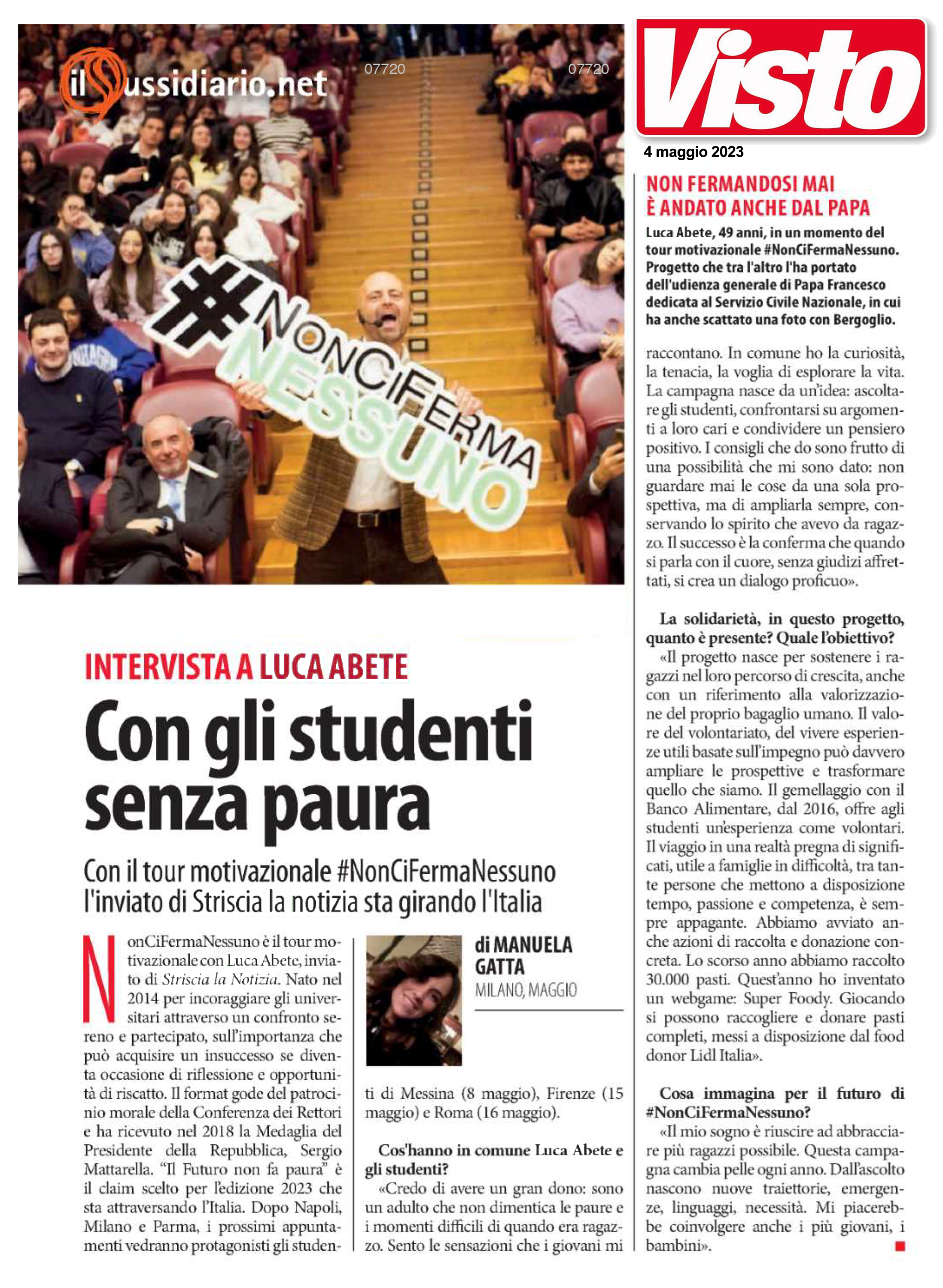 VISTO – Intervista a Luca Abete per il Tour #NonCiFermaNessuno 2023